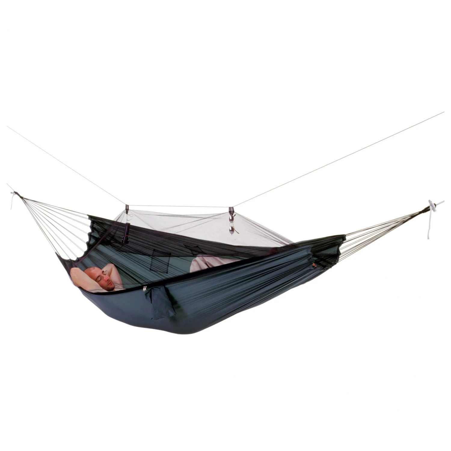 Bietet Schutz vor lästigen Mücken und herabfallenden Blättern – die Amazonas Moskito-Traveller! Die Hängematte mit geringem Gewicht und Packmaß eignet sich optimal für Reisen. Auf der einen Seite ist sie mit einem Moskitonetz ausgestattet, auf der anderen kann sie als ganz normale Hängematte genutzt werden! Der Einstieg über das Moskitonetz ist durch den Reißverschluss problemlos möglich. Die Abspannleine für das Netz hält dieses in der richtigen Position! So hat man beim Lesen und Schlummern seine Ruhe und wird nicht durch Insekten und herabfallende Blätter gestört! Die große Liegefläche bietet gemütlich viel Platz für eine Person. Die Moskito-Traveller lässt sich klein verstauen und ist so ein idealer Begleiter für unterwegs!
