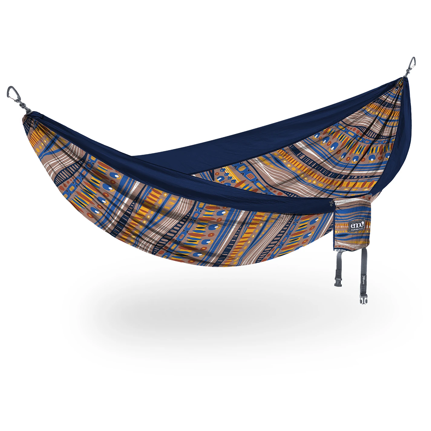 Sich gemütlich in eine Hängematte zu legen, ein Buch zu lesen, oder einfach den Geräuschen zu lauschen ist für viele eine sehr entspannte Vorstellung. Das jedoch zu zweit machen zu können, ermöglicht die DoubleNestPrint Hängematte von ENO. Die hochwertigen Materialien sind nicht nur extrem stylisch, sondern schmiegen sich angenehm an die Haut an und laden zum Kuscheln ein. Gleichzeitig schrecken die Fasern nicht vor dem Wetter zurück und sind auf den Einsatz im Freien ausgelegt. Damit sich die Hängematte einfach transportieren lässt, ist sie mit einem integrierten Packsack versehen. So kann sie auf ein Minimum ihrer Größe komprimiert werden und ein Transport von A nach B ist spielerisch leicht möglich.