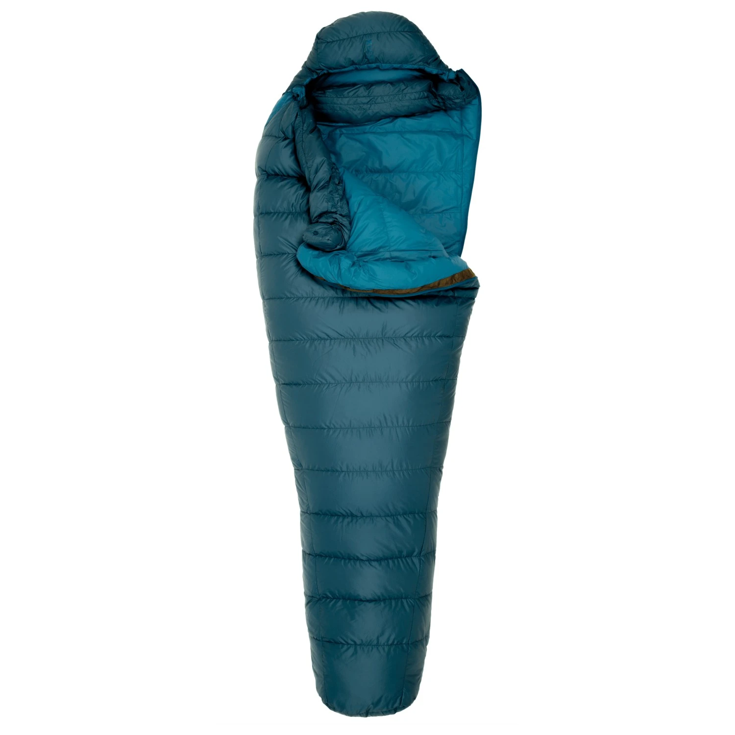 Für eine längere Haltbarkeit und den optimalen Schutz vor Feuchtigkeit sorgt die Verstecknahttechnik. Das Außenmaterial ist zuverlässig robust, während die Füllung aus hochwertiger Daune für den optimalen Wärmekomfort sorgt. Die spezielle H-Kammernkonstruktion verhindert Kältebrücken und reduziert gleichzeitig das Packmaß. Mit der verstellbaren Kapuze und dem prall gefüllten Wärmekragen lässt sich ein vorteilhafter Wärmestau erzeugen, sodass man sich auch in frischeren Nächten noch wohlfühlt. Die optimierte Passform verbessert die Isolationsleistung zusätzlich. Die Daunenkammern der 3D-Fußbox sind alle individuell gefüllt, sodass keine Kälte eindringen kann. Seitlich lässt sich der Schlafsack mit einem durchgehenden Reißverschluss öffnen und bei Bedarf belüften.