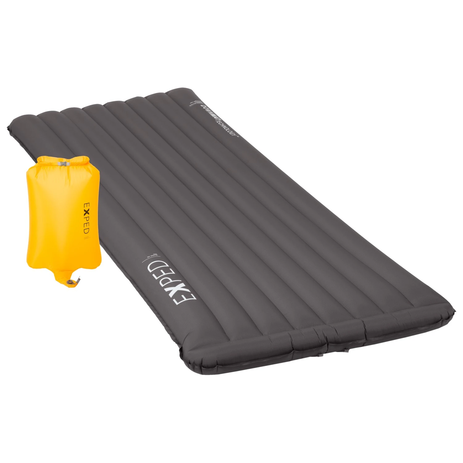 Die Ultra 7R Isomatte von Exped ist in verschiedenen Längen und Breiten erhältlich, so dass sie sich perfekt an den individuellen Bedarf anpassen lässt. Außerdem bietet Exped die Matte entweder in klassischer Rechteckform oder im Mumienschnitt an. Beide Formen verfügen über längsorientierte Luftkammern, die sich mit dem Schnozzel Pumpbag am Flatvalve Ventil schnell und einfach befüllen lassen.