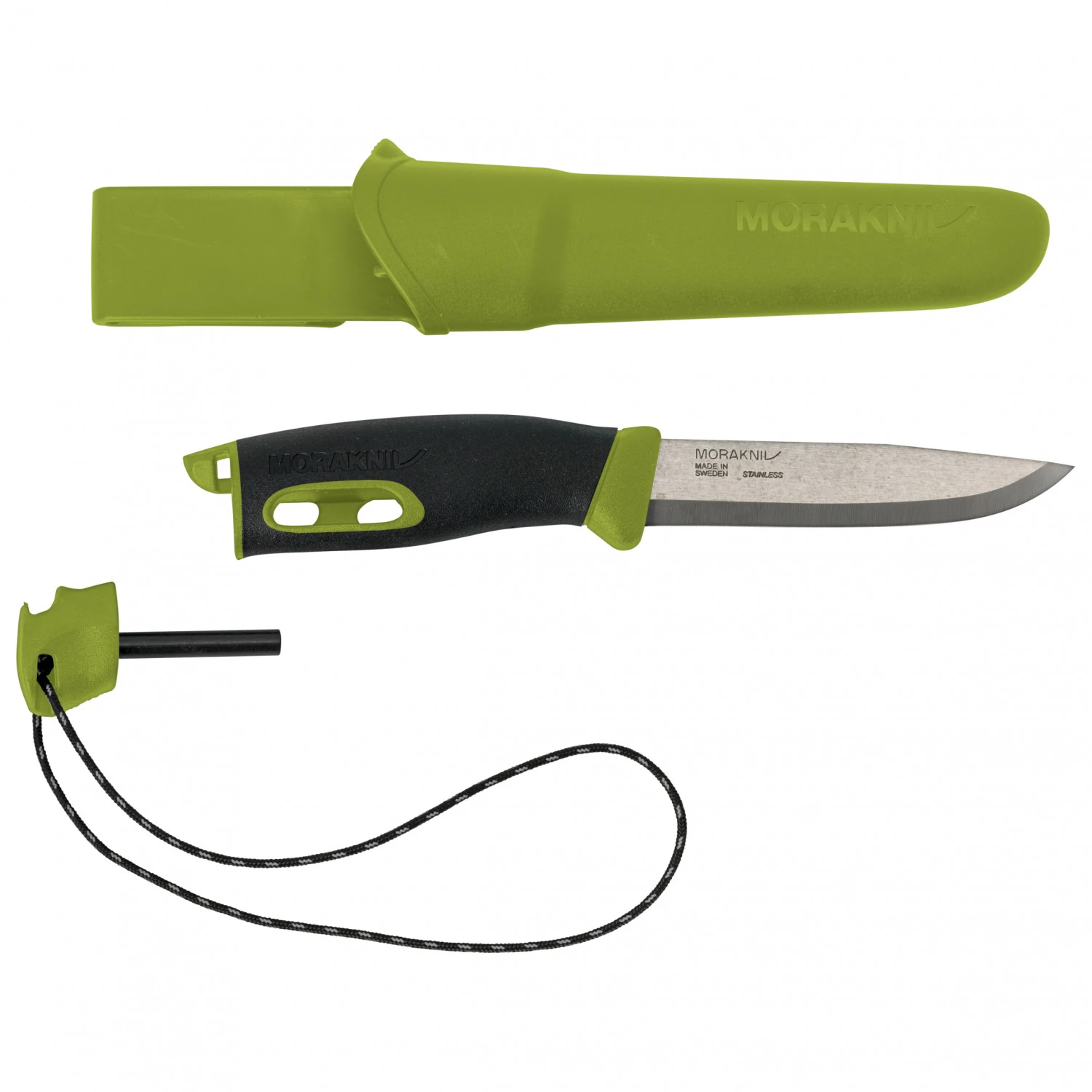 - Zum Feuermachen mit Zündstahl ausgestattet