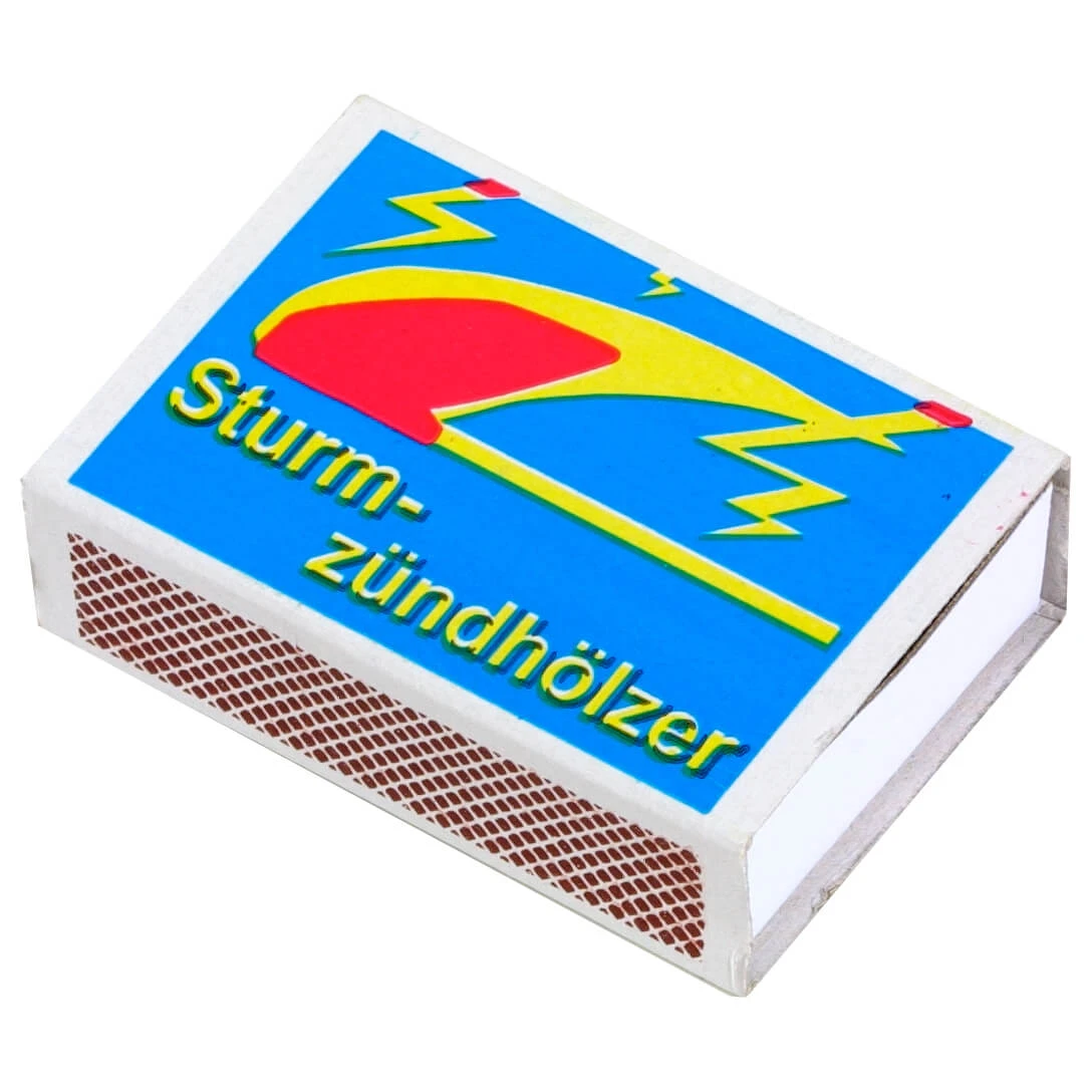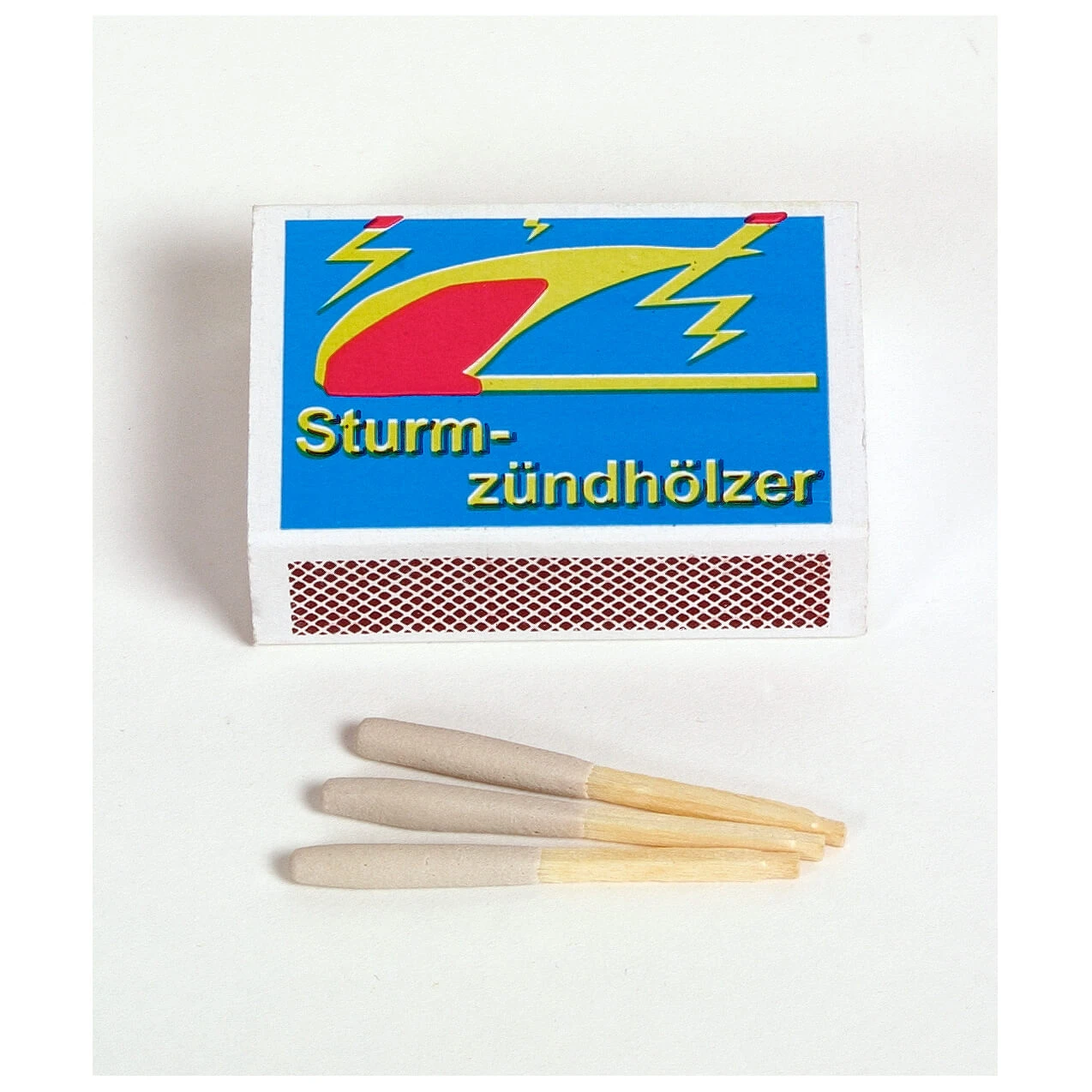 Die Sturmstreichhölzer von Origin Outdoors sind dank ihres langen Schwefelkopfes auch bei starkem Wind nicht leicht zu löschen. Nur im Freien verwenden!
