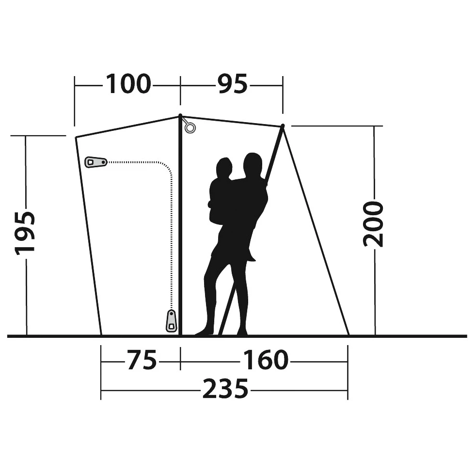 Die reflektierenden Abspannleinen sind auch in der Dämmerung gut sichtbar. Sie verteilen die Kräfte von Wind und Böen gleichmäßig auf das Zelt, was für mehr Standfestigkeit sorgt. Unkompliziert wird das Zelt mit der Seitentür des Vans verbunden und bietet einen tollen Wohnraum, in dem sich der Camper wohlfühlt. Mit dem moderaten Packmaß ist das Zelt ein praktischer Partner für Ausflüge mit dem Bus!