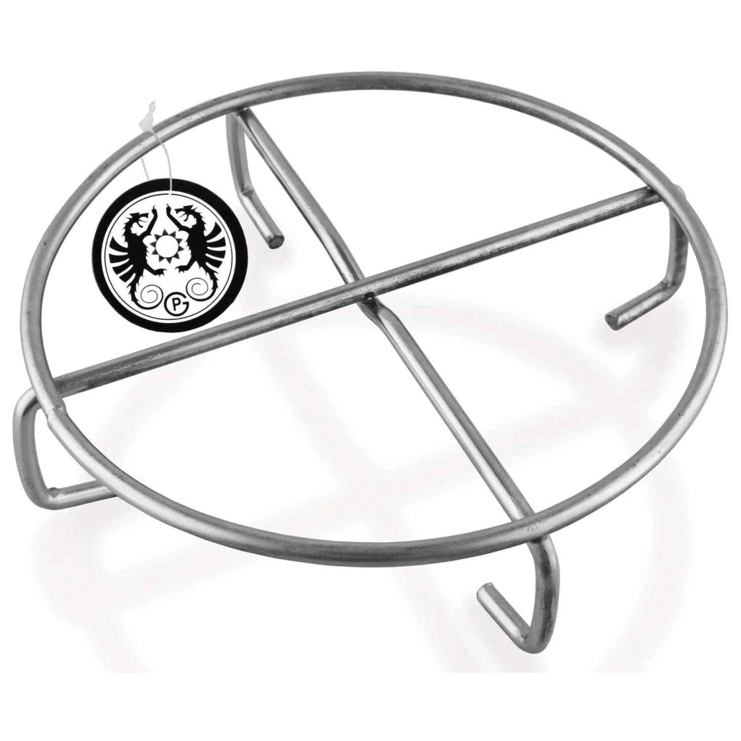 Praktisch für das Kochen am offenen Feuer – der Feuertopf Untersetzer von Petromax! Der Untersetzer bildet eine stabile Standfläche für gusseiserne Töpfe und alle Töpfe und Pfannen, welche im offenen Feuer verwendet werden können. So wird die Gefahr, dass das Gefäß umkippt, deutlich minimiert.