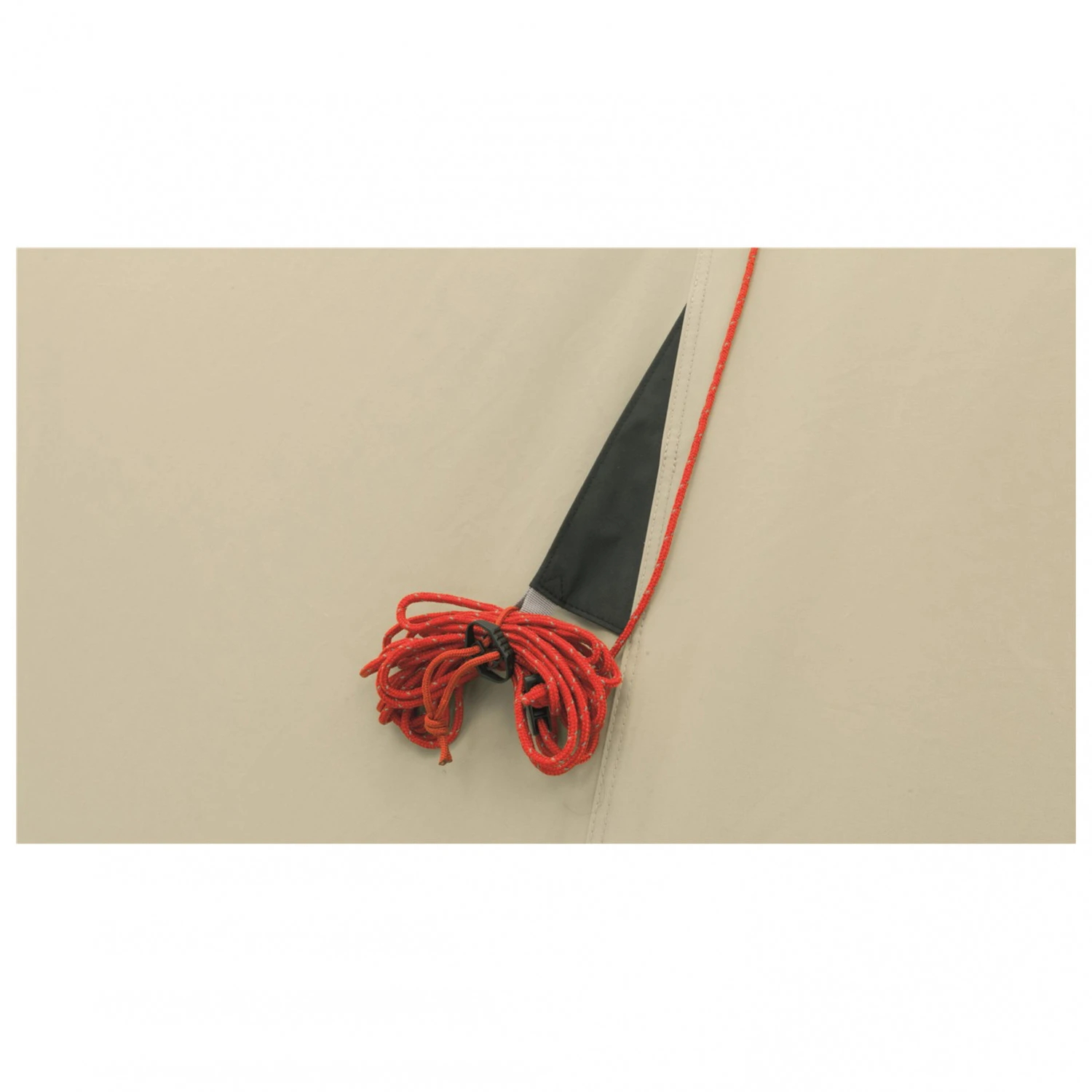 Das Zelt ist als große Tipi-Konstruktion gestaltet und aus dem atmungsaktiven HydroTex Polycotton Zeltgewebe gefertigt. Das ist wunderbar wasserdampfdurchlässig, schnelltrocknend, reißfest und robust, UV-hemmend und dank langanhaltender DWR stark wasserabweisend. Eine zentrale Mittelstange aus leichtem, bruchfesten Leichtmetall gibt dem Zelt seinen Stand. Dreieckige Abspannpunkte sorgen für eine gleichmäßige Lastenverteilung bei stärkeren Windböen. Reflektierende Abspannleinen verhindern versehentliches Stolpern. An der spitz zulaufenden Decke befindet sich eine Ventilationsöffnung die per Kordelzug von innen zugezogen werden kann. Eine elastische Ofenrohrdurchführung für die Verwendung von Feststoffbrennöfen im Innenbereich ist ebenfalls mit von der Partie.