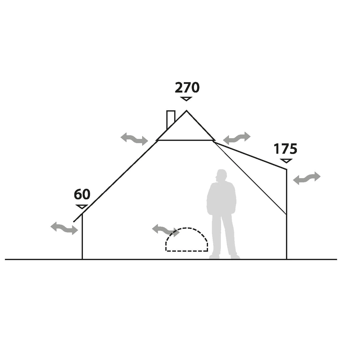 Das Klondike Grande Gruppenzelt von Robens ist so groß, dass neun Personen komfortabel darin schlafen und fast alle darin stehen können. Das Klondike Grande Zelt ist wegen des atmungsaktiven Zeltmaterials aus einem Fasergemisch von Baumwolle und Polyester perfekt für warme Klimazonen geeignet. Das HydroTex Polycotton Außenmaterial sorgt für wenig Kondenswasserbildung, ein angenehmes Raumklima und schützt vor Regen. Zu diesem Zweck hat das Zelt umlaufende Traufe, die verhindern, dass der Regen über Fenster und Türen ins Innere laufen kann. Das Zelt mit Mittelstange ist trotz seiner Größe und Höhe von 3 m rasch aufstellbar mit wenigen Helfern. Die halbmondförmigen Fenster an den Seiten mit Moskitonetz und Zippverschluss für die Verdunklung sind wichtige Elemente des Belüftungssystems, das mit der auf- und zuschließbaren Ventilationsluke der inneren Apex Vent Control an der Tipispitze das komplette Zelt ventiliert. Die Ventilationsluken können an der höchsten Stelle des Tipis auch von innen geöffnet und geschlossen werden. Das Aluminiumgestänge mit der langen Mittelstange im Zentrum sorgt beim Klondike Grande von Robens in Kombination mit den clever angebrachten Abspannleinen und den verstärkten Abspannpunkten für eine enorme Stabilität dieses Zeltes. Es wurde im Windkanal getestet, wo es Windstärken von 150 bis maximal 160 km/h trotzte, also noch sturmstabil ist bei 11 bis 12 Beaufort. Der Zeltboden aus robustem Oxford-Polyester ist herausnehmbar, was praktisch ist bei der Reinigung und Trocknung des Bodens oder – aufgerollt – als Platz für triefend nasse Bekleidung. Die im Tipidach vorinstallierte Öffnung für ein Ofenrohr ermöglicht bei Kälte den Betrieb eines klassischen Yukon-Bollerofens mit Ofenrohr wie des Denali Tent Stove von Robens. Durch Wegrollen des Zeltbodens erhält man einen sicheren Standplatz für den Ofen. Falls man keinen Ofen braucht, ist der zeltbodenfreie Platz gut geeignet für schmutzige Stiefel oder triefend nasse Bekleidung.