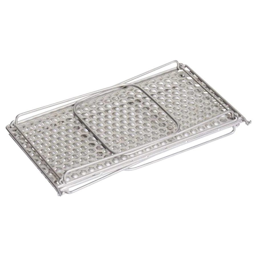Zusammengeklappt kommt er im Rucksack mit zum Picknick oder auf Trekkingtour. Die Wabenstruktur der Grillfläche verhindert, dass beim Grillen kleines Grillgut durch die Gitterstäbe fallen kann (so wie das öfters bei parallel angeordneten Grillstäben der Fall ist). Der Klappgrill wird direkt in die Hitzequelle gestellt.