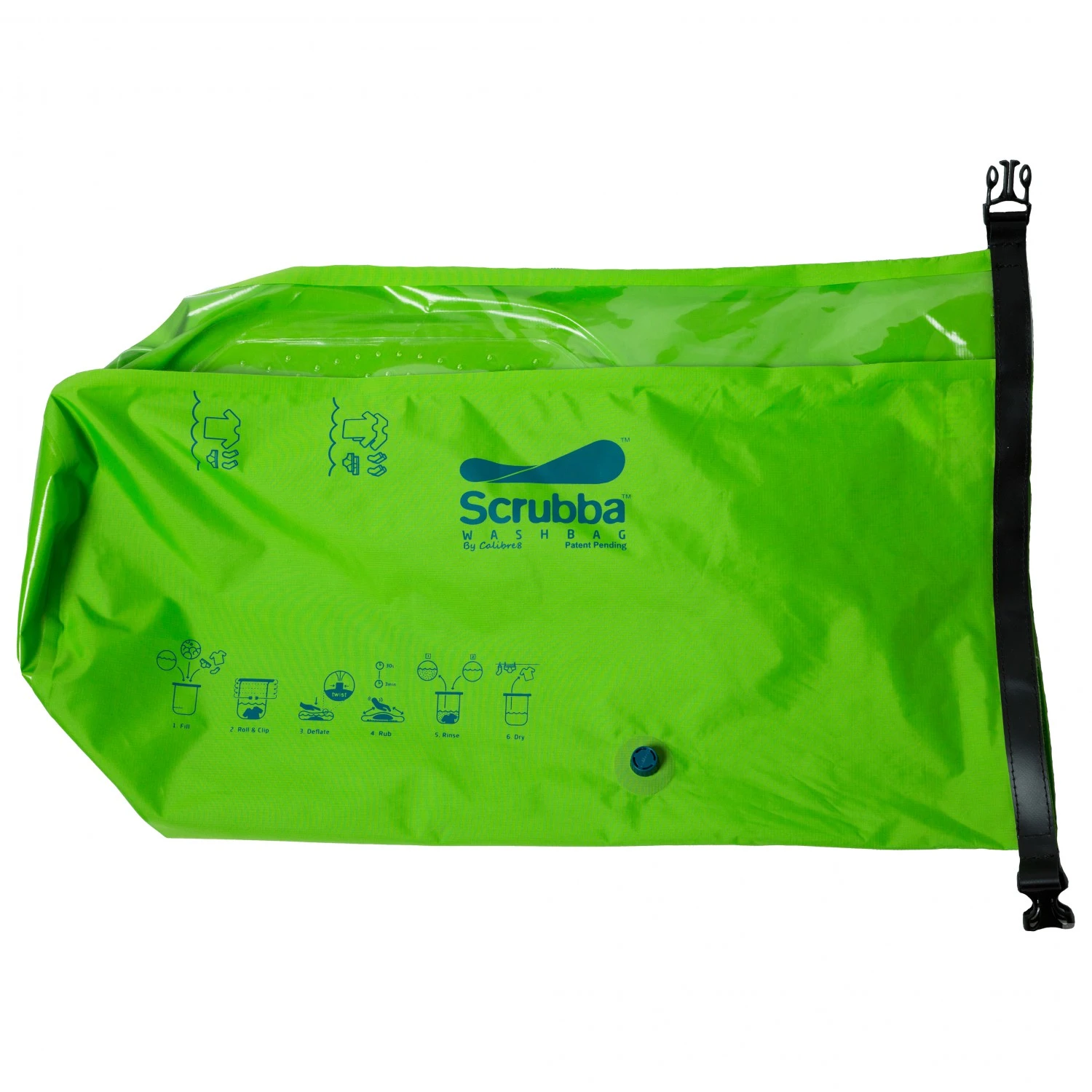 So leicht war Wäsche waschen unterwegs noch nie: mit dem Wash Bag von Scrubba. Einfach die dreckige Wäsche rein, Wasser bis zur Markierung auffüllen, Luft rauslassen und kräftig durchkneten. Dank der Noppen an der Innenseite werden die Klamotten ordentlich geschrubbt. Danach noch mit klarem Wasser ausspülen und alles zum Trocknen aufhängen. Natürlich ist das Material absolut wasserdicht und ein einfacher Rollverschluss sorgt für Dichtigkeit. Der Wash Bag ist ein praktisches Teil fürs Campen und zum Trekken!